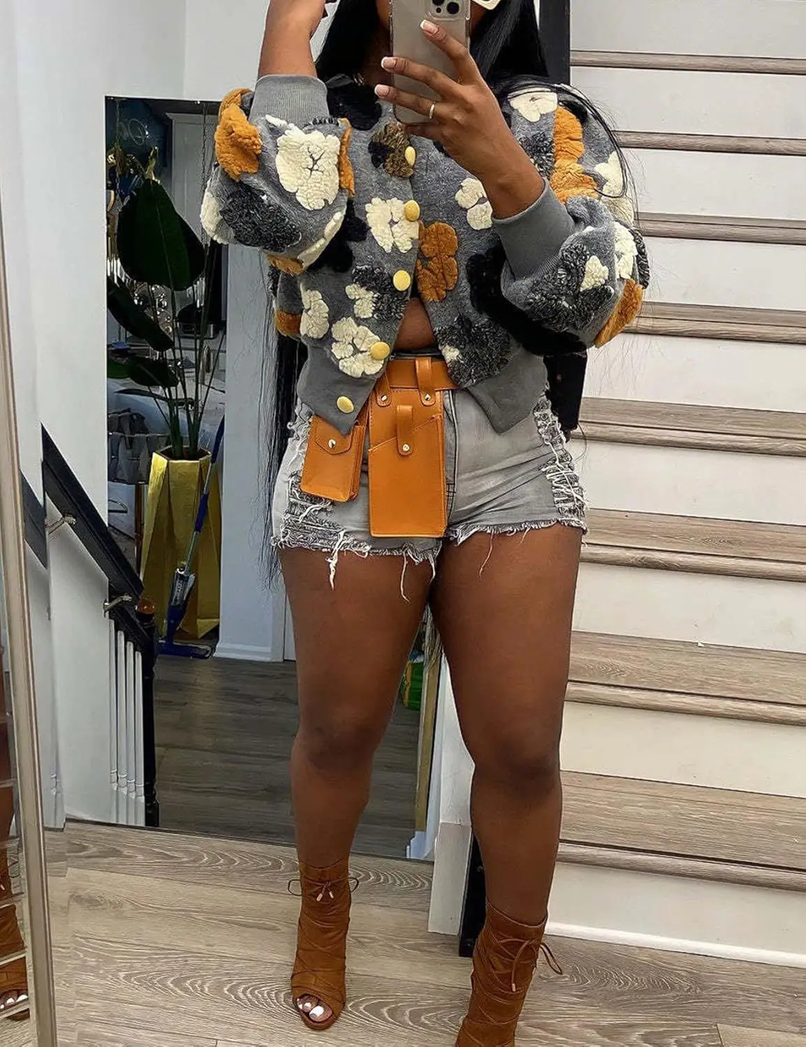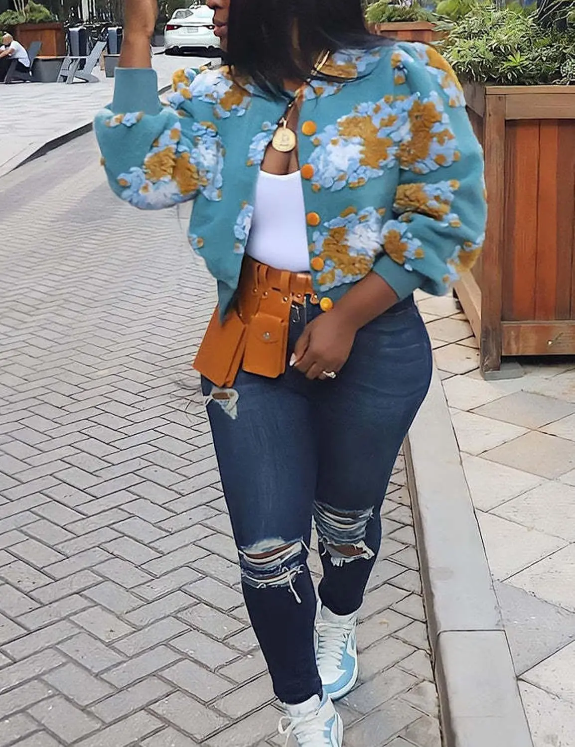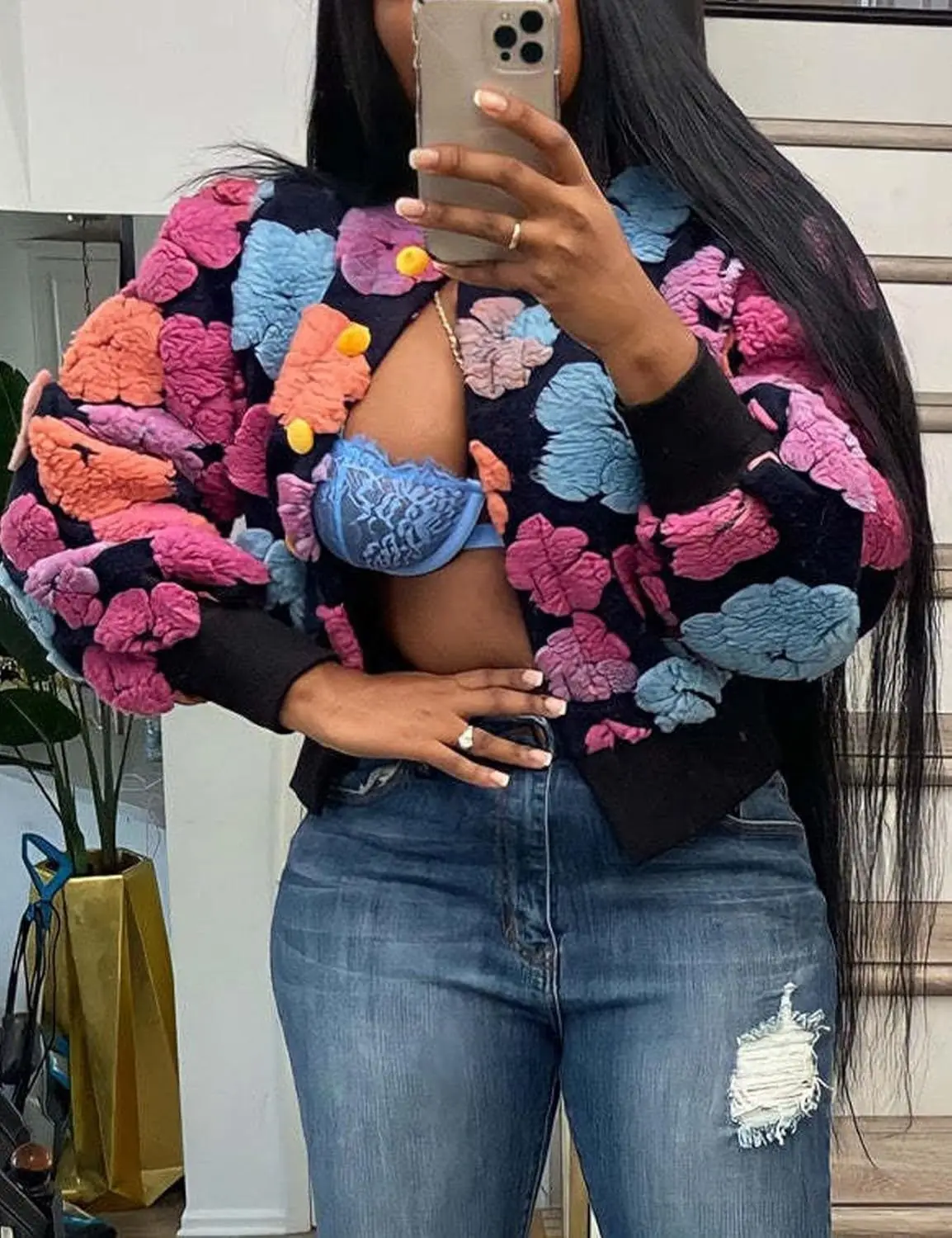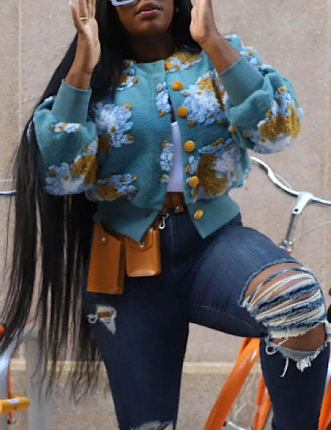 MarieKumax Fashion Plush Jacquard Long Sleeve O Neck Jacket Women's Coat Autumn Winter New Casual Loose Sports Jacket Cardigan Coat Female