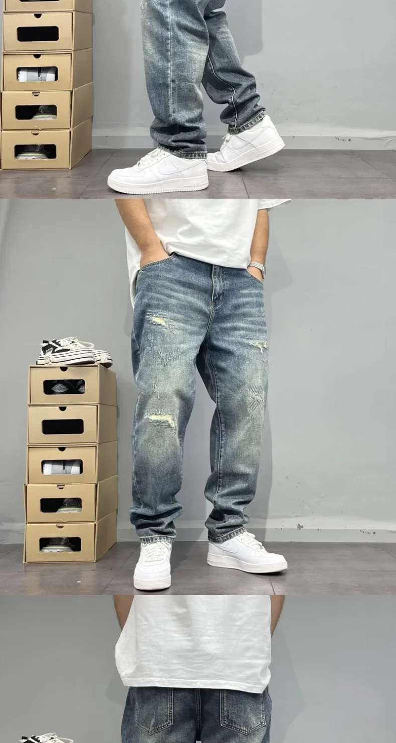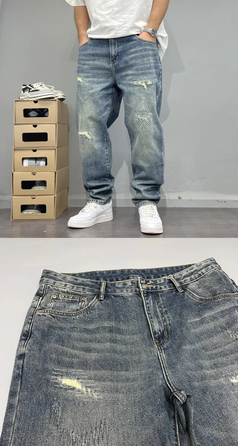 • American-style Casual Design : Embrace retro vibes with these American-style casual ripped patch jeans, perfect for a laid-back look.